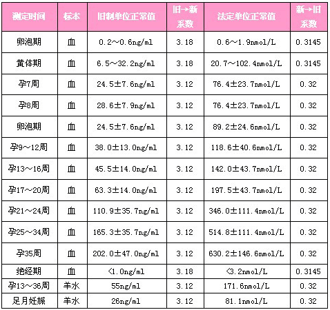 孕酮不同时期的正常值:
